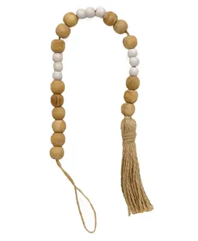 Add a simple, chic elegance to a variety of displays with the Distressed Black, White & Gray Garland w/Tassels. This versatile accessory features large, white, wooden beads with smaller, alternating black and gray wooden beads. The garland is strung on a jute cord and each end is accented with black, suede tassels. The color and design of this garland makes it a perfect addition to farmhouse decor, but it will also compliment a wide range of other styles. Try draping this garland on milk cans or vases, or around blocks and signs to easily upscale your display. Measures 46" long with a .75" diameter.