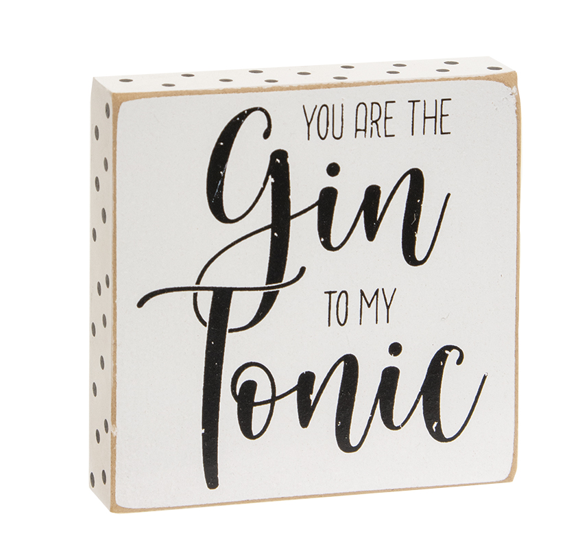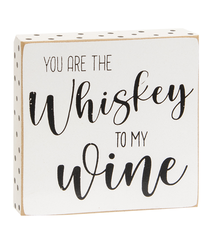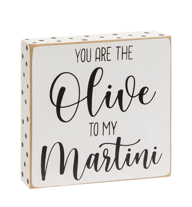 Perfect pairs - from cocktails to company - cannot be beat! The Olive to My Martini Polka Dot Square Blocks are a lovely showcase of that sentiment. Edged with black polka dots and featuring black script and text, these blocks bring a little class to farmhouse decor. The blocks read ‘You are the Olive to my Martini,’ ‘You are the Gin to my Tonic,’ and ‘You are the Whiskey to my Wine.’ Show off your favorite duos with these lovely wooden blocks that look great with black and white decor or a variety of other styles and color schemes. Measures 4” by 4” and .75” of depth with a keyhole hanger.