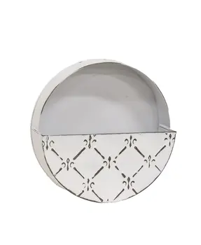 Bring a touch of elegance to rustic beauty with the Whitewashed Fleur De Lis Galvanized Milk Can, Large. This 9.5" high milk can has a whitewashed finish that is distressed over an embossed fleur de lis pattern. It measures 7.5" wide at the handles and is 6" deep. This can looks great filled with florals and with a beaded garland draped around it.