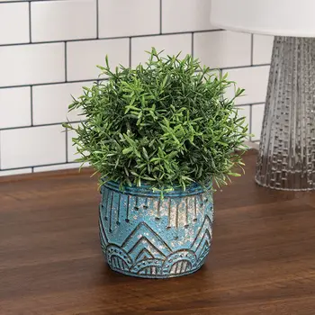 Bring a bit of old-world charm to tabletop displays with the Dusty Rosemary Candle Ring. This faux rosemary ring features dense branches of leaves on a green plastic base. The leaves are deep green at the base with lighter leaves near the ends, offering a dimensional look, with a realistic, dusty finish. Pair this lovely ring with a taper candle or loop it around a narrow bottle for a beautiful spring or everyday display. The ring measures 1" inside dia by approximately 6" outside dia.