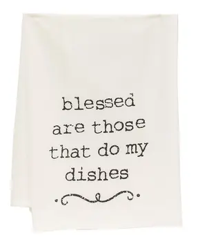 I Save My Carbs For Wine Dish Towel is a fun and cheeky dish towel that will look great hanging next to wine glasses or a wine rack. This white, 100% cotton, dish towel reads, "I save my carbs for wine - it's called 'priorities'" in black text. It is machine-washable for easy upkeep and also looks great hanging on a hook, towel bar, or the handle of an oven. Measures 28" high by 27" wide.
