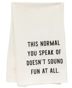 Keep yourself in check with the I'm Starting To Get On My Own Nerves Dish Towel. This funny, 100% cotton towel features a crisp white color and black text that reads, "I'm starting to get on my own nerves." It is machine-washable for easy maintece and it looks great hanging from oven and cabinet handles in the kitchen. Measures 28" high by 27" wide.