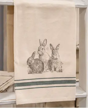 Baby Bunny Trio Slate Feed Sack Stripe Dish Towel