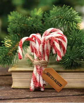 Give your home a treat this holiday season with the 6/Set, Sparkle Chenille Candy Canes. The sparkle covered holiday accessory will make your home shine with their festive red and white chenille fabric. Bundle Measures 7" high by 2.5" wide by 2.5" deep. Candy canes come tied in a jute string with an attached note reading, "Santa's Sweets".