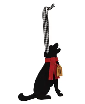 Bring a little tail-wagging charm to the farmhouse this holiday season with the I’ve Been Good Golden Retriever Ornament. This cutout wood ornament features the shape of a standing Golden Retriever with a dimensional ear and bright red felt scarf. A natural wood tag reading ‘I’ve Been Good’ hangs from the scarf and the ornament has a black and white gingham ribbon hanger. This ornament looks darling on the tree or can be used as a gift tag for holiday presents. Measures 3.5" high by 5.25" wide with a .25" depth.