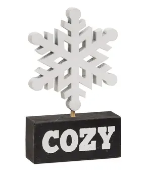 Baby, it’s cold outside, so stay inside the cozy farmhouse with the Let It Snow/Snowflake Square Block assortment. These lovely wooden blocks have dark blue and white finishes with distressed edges and they measure 3" square with a .75" depth. One block reads ‘Let it snow’ in dark blue on white. Another states ‘Baby It’s Cold Outside’ in white script and text on blue. There is one blue and one white block each with a distressed style snowflake in the opposing color. These blocks look lovely displayed in pairs of one sign and one snowflake. Or display as a group or individuals with Winter-florals and candles.
