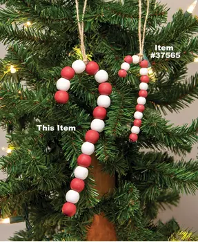 Bring a little merry-mint to farmhouse Christmas decor with the Mini Wooden Bead Candy Cane Ornament. This cute ornament measures 4" high by 1.5" wide and is made of alternating red and white wooden beads. It has a jute hanger at the top which can be removed to hang the ornament via the hook in the candy cane. Hang these ornaments on the tree or string several along a garland or accent a Winter wreath. They’ll add a little sweetness wherever they’re displayed!