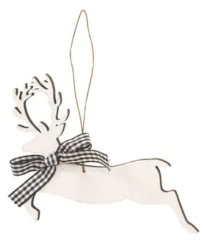 Holiday farmhouse displays with reach new heights with the Farm Fresh Reindeer Feed Box Sign. This wooden box sign features two green reindeer cutouts facing each other with red text reads ‘Farm Fresh Reindeer Feed.’ Below that, black text reads ‘Fly Higher & Farther - North Pole Grains.’ The block sign measures 8" high by 6" wide with a 1.5" depth for sturdy freestanding display. The open back also allows for hanging using a nail. This sign will look lovely with red and green festive florals or paired with other reindeer and sleigh decor.