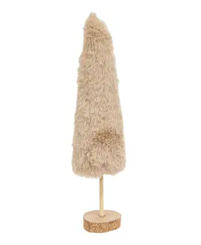 Add a little whimsy to Winter-time displays with the Furry White Sparkle Christmas Tree, 12"H. Measuring 12" high with a 2.5" diameter, this tree is made of soft, faux fur in creamy white with a dash of sparkly fibers. The tree has a round wooden base and wooden dowel trunk. Accent signs or sitters with this tree and bead garland for a darling look.