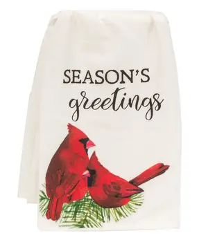 Spread good cheer this holiday season with the simple feel of the Happy Holidays Cardinal Dish Towel. This winter inspired towel boasts a clean white color and the image of a cardinal on a tree branch. It reads “Happy Holidays” in black lettering and has a soft cloth material. The towel is great for decorative display, cleaning up messes around the kitchen, or drying dishes. Measures 28” high by 28” wide.
