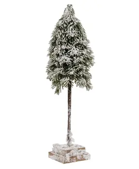 Build a mini Winter wonderland inside this season with the Heavy Snowy Weeping Pine Tree on Base, 12". This enticing 12" tall tree has a 2.5" square wooden base and dark green plastic pine branches. It has an exposed trunk and a heavy dusting of flocked snow from top to base. This tree looks lovely with other trees and a reindeer sitter to give the feel of deep Winter snowfall in the forest.