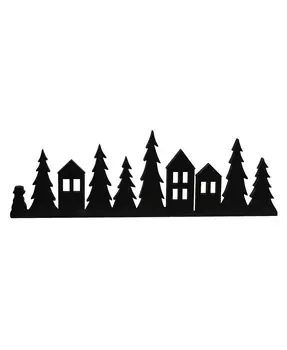 Bring warm rustic notes to the Winter farmhouse with the Snow Place Like Home Shadowbox Sign. This 11.75" high by 9.5" wide by 1.5" deep shadowbox style sign is solid wood with a natural wood finish. It reads 'There's Snow Place Like Home" in black script with a black wooden snowflake replacing the 'O' in 'snow.' A black cutout silhouette of homes, pine trees, and a snowman appears below the text and has a light glitter accent. Black snowflakes fall all around the words. The sign can be displayed freestanding or hanging via the sawtooth hanger in back. It looks beautiful with black and white decor or paired with Winter greenery with pinecones to pick up those warm wooden notes.