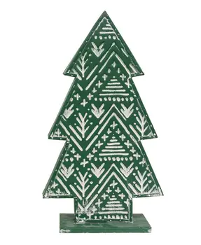 Bring snowy designs into displays in a new way with the Snowflake Embossed Distressed Metal Christmas Tree. This 14" high by 8" wide by 3.25" deep metal tree has an enchanting embossed snowflake design and a simple white finish. It has light distressing and is freestanding. This pretty tree looks gorgeous against the deep greens of a Winter greenery or against other trees or signs.